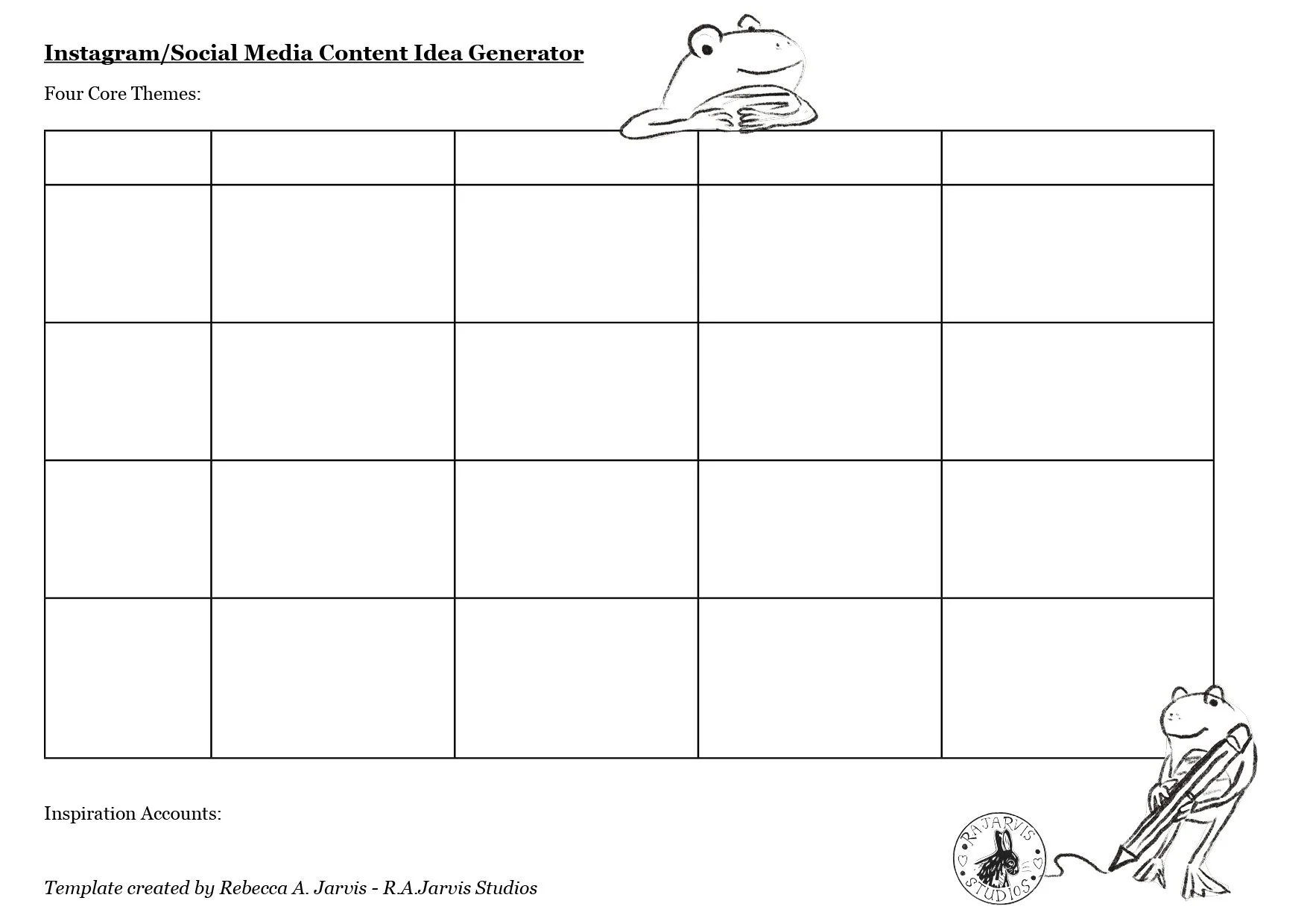 Using the free template below, write each theme into a box across the top, as well as down the side, then fill in the spaces with content ideas where they cross over.